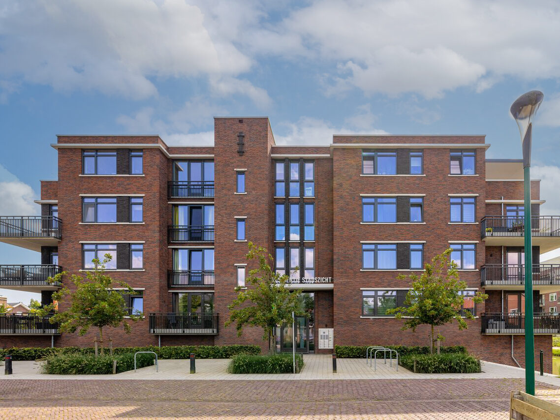 De voormalige school ‘De Opstap’ heeft plaatsgemaakt voor een woongebouw met 27 luxe appartementen en penthouses met grote balkons en dakterrassen. Op deze plek maakt de tot watergang getransformeerde David van Bourgondiëweg een knik, waarmee het gebouw met 2 zijdes in het water staat. Het stijlvolle appartementengebouw in Nieuwe Haagse School stijl (met kenmerkende kubistische vormen, horizontale belijningen en fraai metselwerk) bevindt zich op een overgang van eengezinswoningen naar grotere bouwblokken. Door de sterke geleding van het volume kan het zich meten met de omliggende woongebouwen, maar ook de kleinschalige bebouwing aan de centrumkant. Onder het gebouw is een half-verdiepte stallingsgarage gerealiseerd, waarin ook de bergingen van de woningen te vinden zijn. Residentie Stadszicht vormt met de nieuwe watergang de kers op de taart van vernieuwde wijk De Engk.Uitnodigende open patio