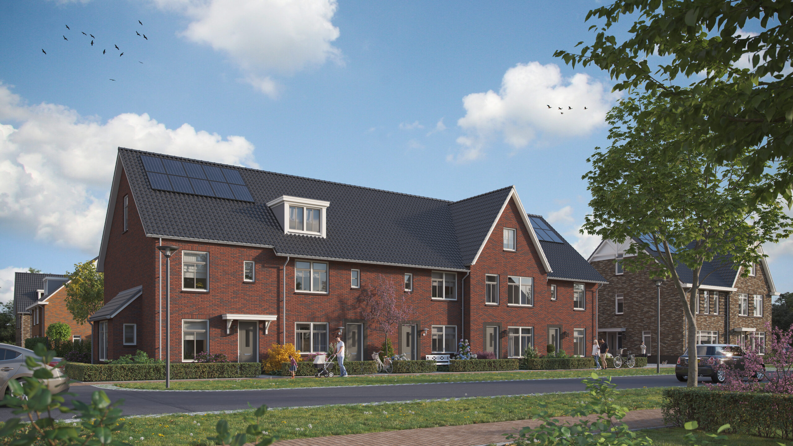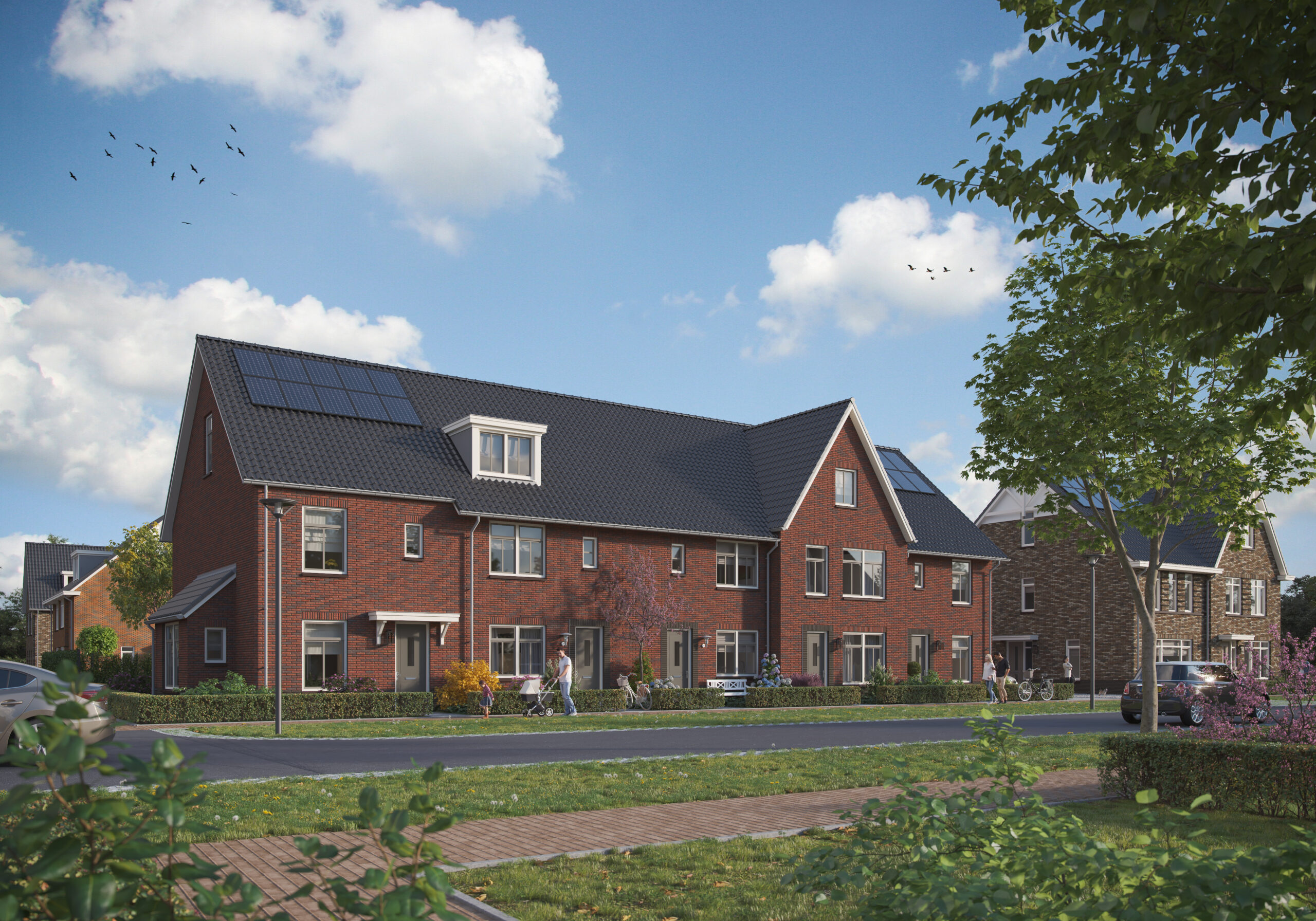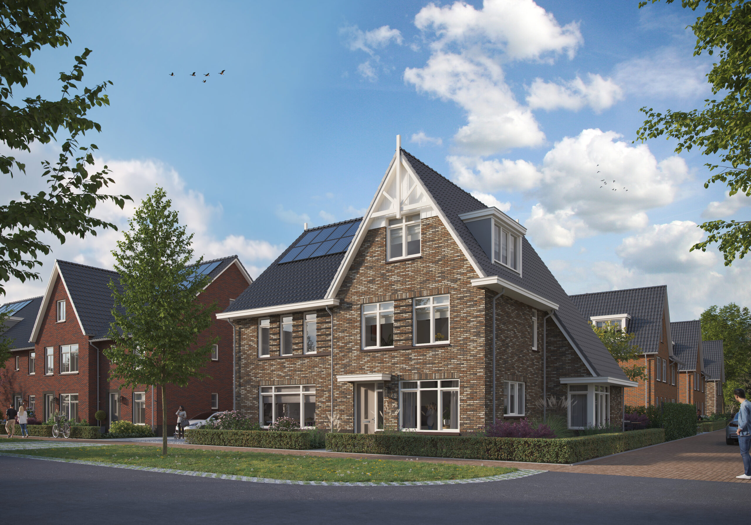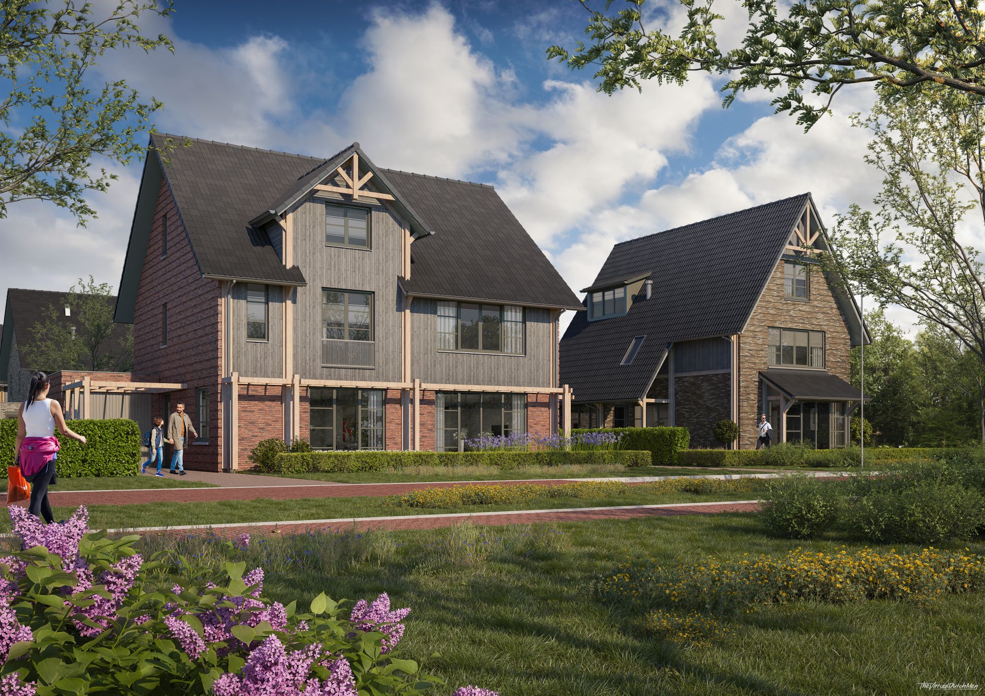 Hoef en Haag is onlosmakelijk verbonden met het rivierenlandschap van de nabijgelegen rivier de Lek. De blauw-groene structuur van water en groen, waarvoor het bestaande agrarische landschap met sloten, wilgenrijen en boerenerven het vertrekpunt vormden, zorgen voor een natuurlijk indeling in drie deelgebieden: Het Dorpshart, Het Lint en De Erven. Elk deelgebied heeft een eigen karakter en is opgebouwd uit kleinschalige buurtjes met bijbehorende ontmoetingsplekken. De woningen zijn onderscheidend vormgegeven, hebben een eigentijdse uitstraling en soms robuuste detaillering. In deelgebied De Erven zie je bijvoorbeeld verbijzonderingen zoals veranda’s, begroeide pergola’s en zitelementen die uiting geven aan het buitenleven.